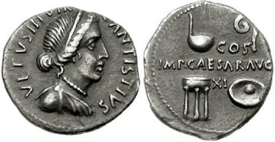 Avers : C ANTISTIVS VETVS III VIR : Buste drapé et diadémé de Vénus à droite.