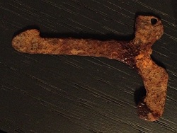Pièce faisant partie d'un système d'accrochage de volet, fabriqué encore de jours...