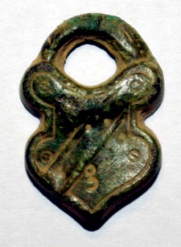 En cuivre. Dimensions : 20 x 13 mm.