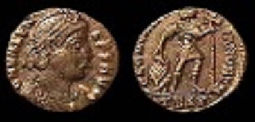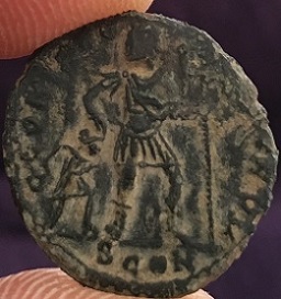 selon moi Nummus (AE4) soit de Valens , soit de Valentinien I au revers Gloria romanorum empereur tenant un captif de la main , dans ce style comme cette monnaie de Valens