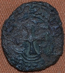A l'avers on peut voir un trilobe contenant au moins 2 fleurs de lys !