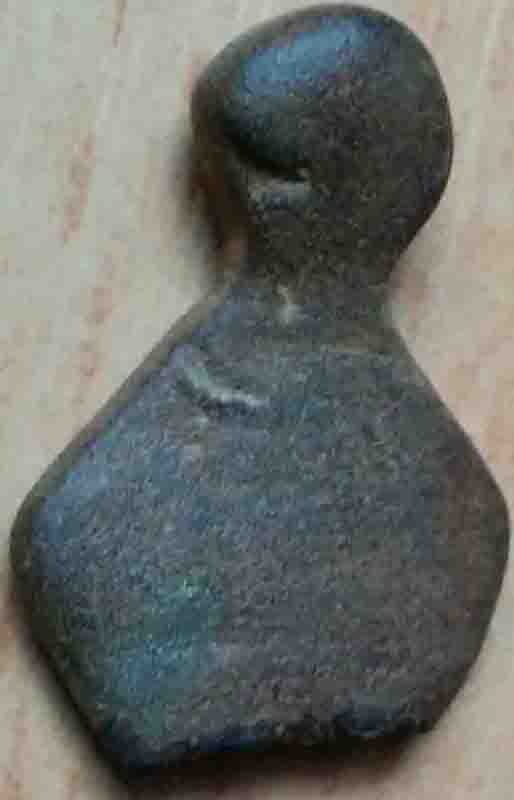 Je vous présente ce petit morceau de jenesaispasquoi :). Le métal en lui-même me laisse perplexe, si c'était du cuivre il aurait du vert de gris. Là c'est peut-être du bronze sans trop de cuivre, ou du laiton ?