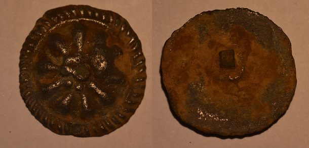 Voici un petit bouton à identifier. Diamètre 22mm, 2.76 grammes.