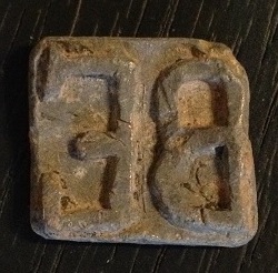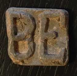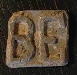 trouvé plaque en plomb 23 X 20 X4 mm marque BE...ca peut etre quoi?