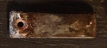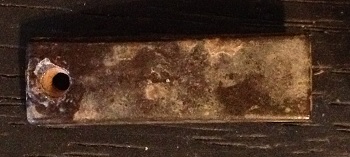 trouvé objet en bronze ou laiton? 28 X 9 X (3 au plus etroit et 6 au plus epais)