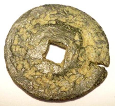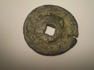 ....il y a aussi des pièces chinoises trouées par le milieu et avec un trou carré.