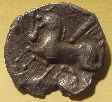 Je fais du rangement dans mes tiroirs et voilà une gauloise qui n'a jamais vraiment été identifiée! Elle est fourrée, l'avers a bien morflée mais le revers est encore bien identifiable.
