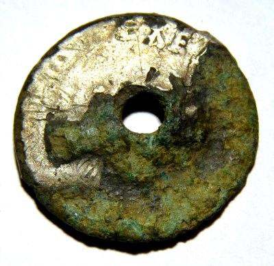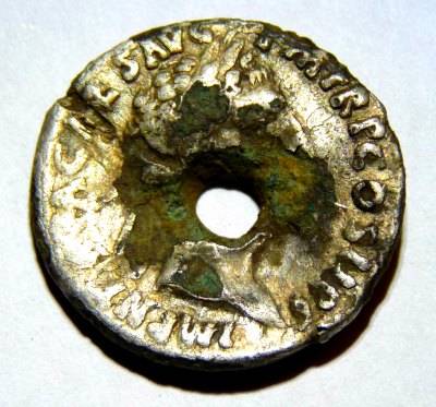 Dans le livre ( que possède et qui vaut le coup ) ' La parure de cro-magnon à Clovis ' il y a une photo d'une monnaie romaine trouée retrouvée dans une sépulture mérovingienne qui est declareé comme parure ou bijoux ! Vous pouvez l'apercevoir dans ma poste 121456R10.