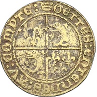 A l'avers (enfin du seul côté ou l'on voit qq chose), on peut voir 4 zones avec 3 fleurs de lys en haut à gauche et en bas à droite.