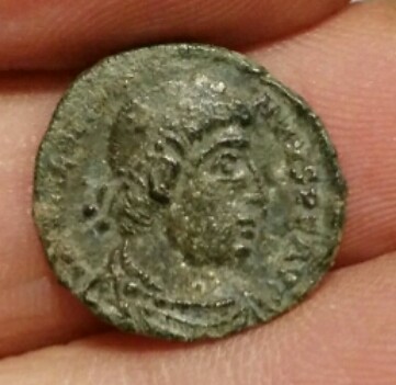 Vu le nombre de lettres à gauche du buste je pencherais pour Valentinien I