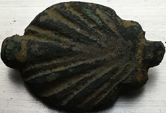C'est vrai qu'on dirais bien une coquille St Jacques, ce qui orienterai plutôt du côté des pèlerins de Compostelle.