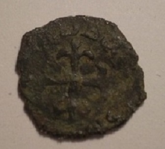 Cette fois ci une piécette à laquelle je ne croyais pas car très concrétionnée. Après moult patience, une face s'est révélée, et l'autre un peu.