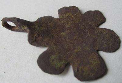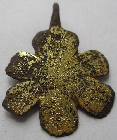 Voici ce que je pense être un pendant de harnais avec reste de dorure sur une face, en or .
