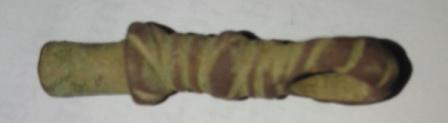 quant à l'identification supposée, pour l'instant j'en reste dubitatif, ...disons perplexe. J'espérai d'autres propositions ou une confirmation de l'identification Vincentesque (que je remercie pour son idée) avant de l'aiguiller dans le bon chemin de rangement et de remercier les participants à l'identification. Pour moi c'est un petit objet qui méritait peut-être d'être identifié, mais la bam se rapproche maintenant à grands pas, et en tout cas cet artefact ne mérite pas une montée de tension de qui que se soit.