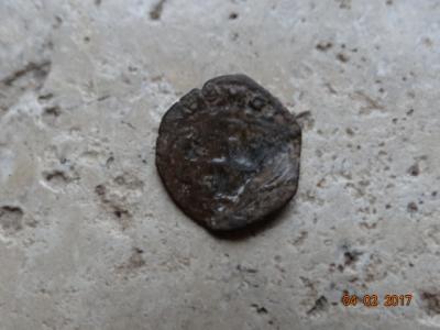 Voici une petite monnaie trouvée hier après midi dans un bois qui n'en était pas un auparavant . Pouvez vous me dater cette pièce svp . Le diamètre est de 15mm et le poid 0,63g. Il me semble voir trois lettres en bas à droite 'omo' mais pas sur. D'avance merci et bonne detect !!!!