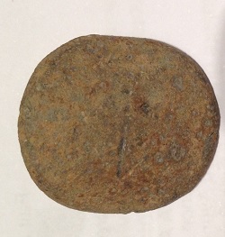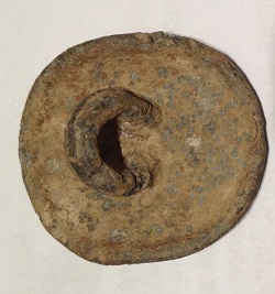 trouvé ce gros et lourd bouton 27 mm , il à l'air en plomb une idée de quand il date? il me parait trés rustique par rapport à ceux que je trouve d'habitude :)