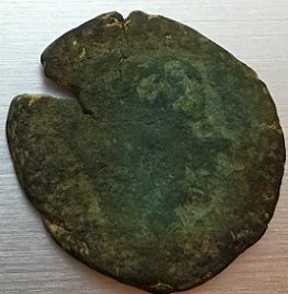 Pour son pédigrée, je l'ai trouvé dans un champ du 69, elle mesure 23/24mm de diamètre pour 7.31g et il en manque un morceau !