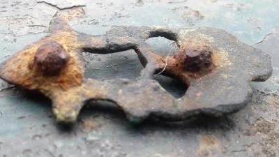 voici une sorte d'applique en bronze avec quelques traces de fer...