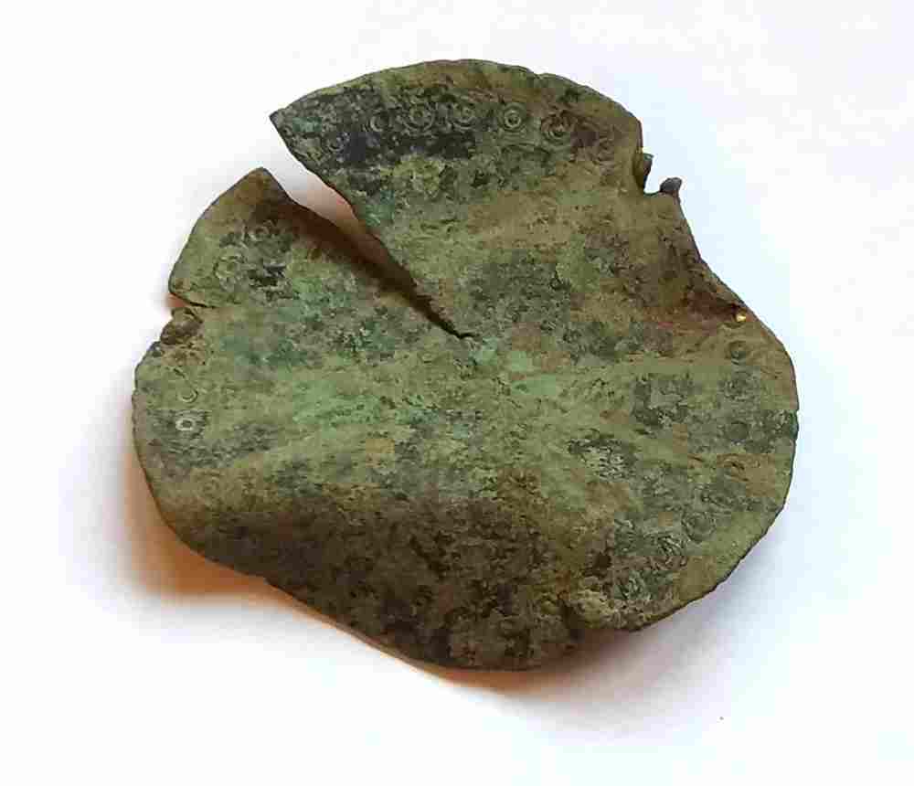 Salut Stefoune Je n'ai jamais vu un plateau de balance décoré ( une estampille centrale, oui, mais pas un pourtour d'ocelles... ) donc je pense que c'est plutôt un miroir tant qu'on ne m'aura pas montré clairement un petit trou rond sur le bord au niveau des arrachements. Comme a dit Lebouineur : ''toi qui a l'objet en main essaye de déterminer si il y a la présence de trous au niveau des ruptures...''