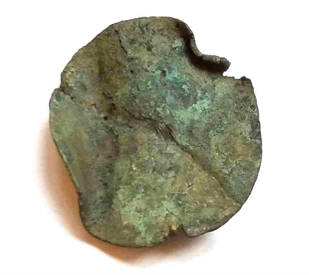 Si la photo ne me trompe pas, j’aperçois trois arrachements situés exactement à la mème distance ce qui m'amène à penser à un plateau de balance ;les trois points servants à suspendre la plaque .