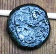 je vous propose cette pièce qui me semble particulière, mes recherches me font m'orienter vers statère en bronze de chez les Eduens. Malheureusement ma balance est en transit dans un carton ; le diamètre dans un sens 15mm dans l'autre 16mm