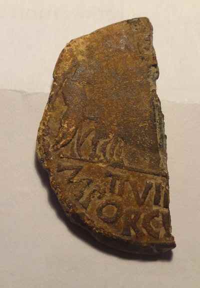 Il s'agit d'un demi as d'Auguste émis à Caesaraugusta en Espagne vers 9 av. J.-C. Avers/ IMP AVGVSTUS XIV tête laurée à gauche, avec lituus et patère. Revers/ Prêtre menant un attelage pour délimiter le territoire de la cité CAESAR AVGVSTA M PORCI CN FAD II VIR. Références : Burgos 228, RPC 314.