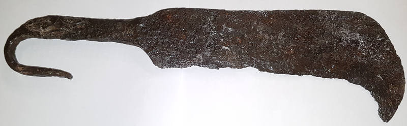 Eh oui, mais bien sûr....le crochet est là pour pendre la serpe à la ceinture.à portée de la main.