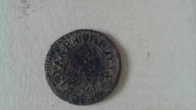 le plus rapprochant que j'ai trouvé c'est une pièce de 8 Maravédis en cuivre pour Philippe IV roi d'Espagne au revers écu à quatre cantons dans un cercle semble t'il ( mais qui a t'il dans les cantons ?)