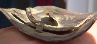 Et un objet fortuité cet aprém, plutôt gros module en fait. Suis en cours de nettoyage mais plus ça va et plus ça ressemble à de l'argent... Cela dit, les traces de bronze (oxydation) me font dire que ce n'est pas de l'argent pur!!