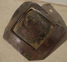 75 mm pour la les médianes en forme de losanges et pour le poids 35 grs. Je pense à un objet du 19 ou 20 eme siècle, mais c'est big!! Je vous sollicite donc pour me dire de quoi il s'agit et à quoi ça pouvait servir. Le portrait est plutôt moustachu, sûrement un aristot ou un soldat ... Désolé mais quelque déformation pour la photo de droite.