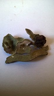 Sympa cette broche et en bel état. Je pense qu'elle peut dater de la fin du dix neuvième siècle jusque vers le milieu du vingtième. Mais c'est très difficile à dater de genre de trouvaille. Je dirais, vu le style, années cinquante au plus tard.