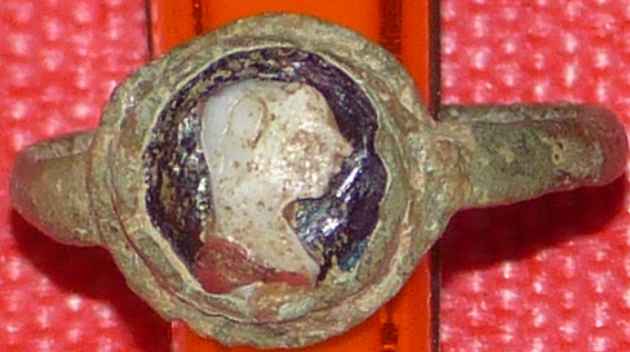 Remarquons cependant que la bague paraît en bronze et non en métal précieux.