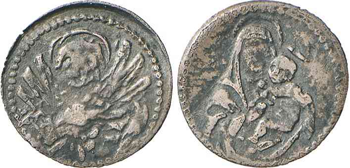 A l'avers j'y vois une vierge à l'enfant