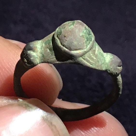 La bague de l'Indien à laquelle renvoie le troisième lien de Bidouille est quasiment pour ne pas dire strictement identique à la tienne et m'a permis de me rendre compte que son chaton avait la forme d'un cœur, ce que je n'avais pas remarqué tout d'abord, d'où la nécessité de présenter des photos prises bien à la verticale de l'objet comme dans le poste de l'Indien. La figuration d'un cœur exclut toute datation antérieure au XVI ème. D'autre part, la bague de l'Indien imite un mode de sertissage dont les griffes, à embouts ronds, sont serrées les unes contre les autres tout autour de la pseudo-pierre, ce qui se retrouve exactement sur l'exemplaire d'Artéfacts BAG-9100 daté de 1500 à 1800, et donc la datation XVI ème - XVIII ème me semble tout à fait correcte pour ta jolie bague.