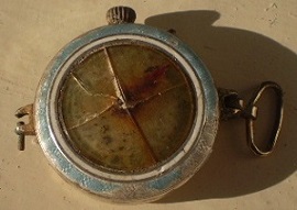 Dommage que le verre soit éclaté, j'aurais bien aimé savoir à quelle heure la montre s' est arrêtée...