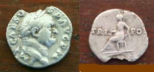 [1913] les , voiçi un denier vespasien,3 gr environ ,ce qui m'intrigue c'est la cassure??, elle a été trouvée sur un chemin récemment créé par un engin forestier, est-ce l'engin qui la cassée? ou alors il y a deux mille ans pour gratter un peu de matière noble,auriez vous, déja vu ce genre de monnaie (cassée)?