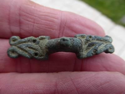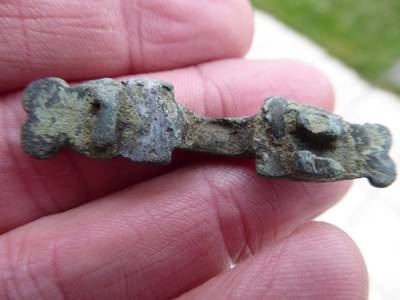 Dans le même champ que j'ai trouvé la bague en or, j'ai sorti une belle fibule , pouvez-vous me la dater svp ?