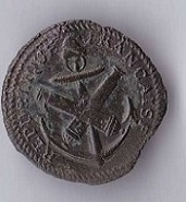 Dessus il y a deux canons avec une ancre et un bonnet phrygien sur l’anneau de l’ancre.