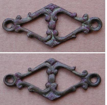 voici un objet trouver hier, malheureusement il est cassé, auriez vous un idée d'id ? il m'est difficile de le mesurer, car replié sur lui meme...grossomodo je dirais 4 a 5cm de long pour 2,5cm a 3cm de large
