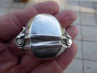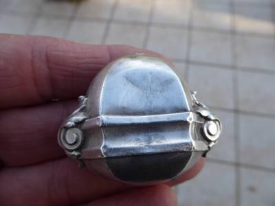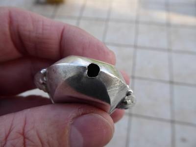 Voici un petit objet très sympa trouvé cet après-midi dans un champ en Charente (16) , je pense à une petite clochette en argent car il y a un grelot à l'intérieur, elle mesure environ 45mm de large, 40mm de haut et une épaisseur de 20mm pour un poids de 10,12grs.