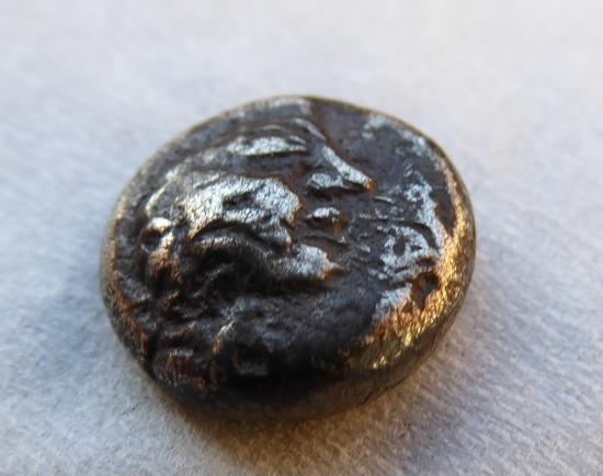 anderos,olive,drachmelourde,et les autres^^ merci de vous penchez sur cette monnaie intriguante,je vous poste une autre photo avec un autre angle,on voit mieux le renflement qui ressemble a un 8,boucle d'oreille peu etre.