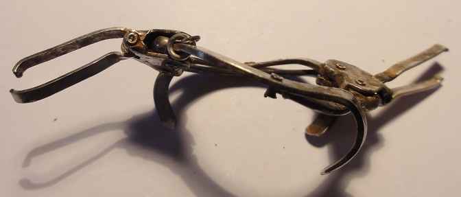 J'ai trouvé hier un objet qui m'intrigue, en bon argent avec deux poinçons; MG BM où M6 BM , mais qui reste à identifier. Pas facile à décrire, objet articulé, avec une chaînette, que j'ai cassé au nettoyage , d'un seul côté, le tout en longueur fait 52 mm, il y a comme des 'crochets' qui sont articulés, je compte sur vous, si vous avez une idée ?