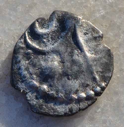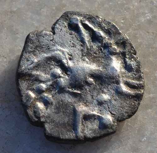 Merci de m'aider à identifier cette petite monnaie qui, je pense, est gauloise. Je l'ai fortuitée dans un coin de Sologne controise où je trouve parfois des potins à la tête diabolique (turons). J'ai du mal à orienter le recto, le frappeur a fait son travail comme un sagouin .