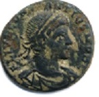 nummus au revers deux soldats debout face à face , casqués et vêtus militairement tenant chacun une haste pointe en bas et s’appuyant sur un bouclier , au milieu deux enseignes militaires