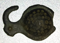 Il me semble qu'il s'agit d'un objet qui était riveté sur une partie de cuir qui se mettait au niveau de la main ( vers le pouce ) pour y recevoir les coup d'aiguille comme un dé un coudre.
