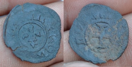 Je pense à un denier bourdelois, mais si quelqu'un peut me l'identifier clairement je lui en serais reconnaissant...