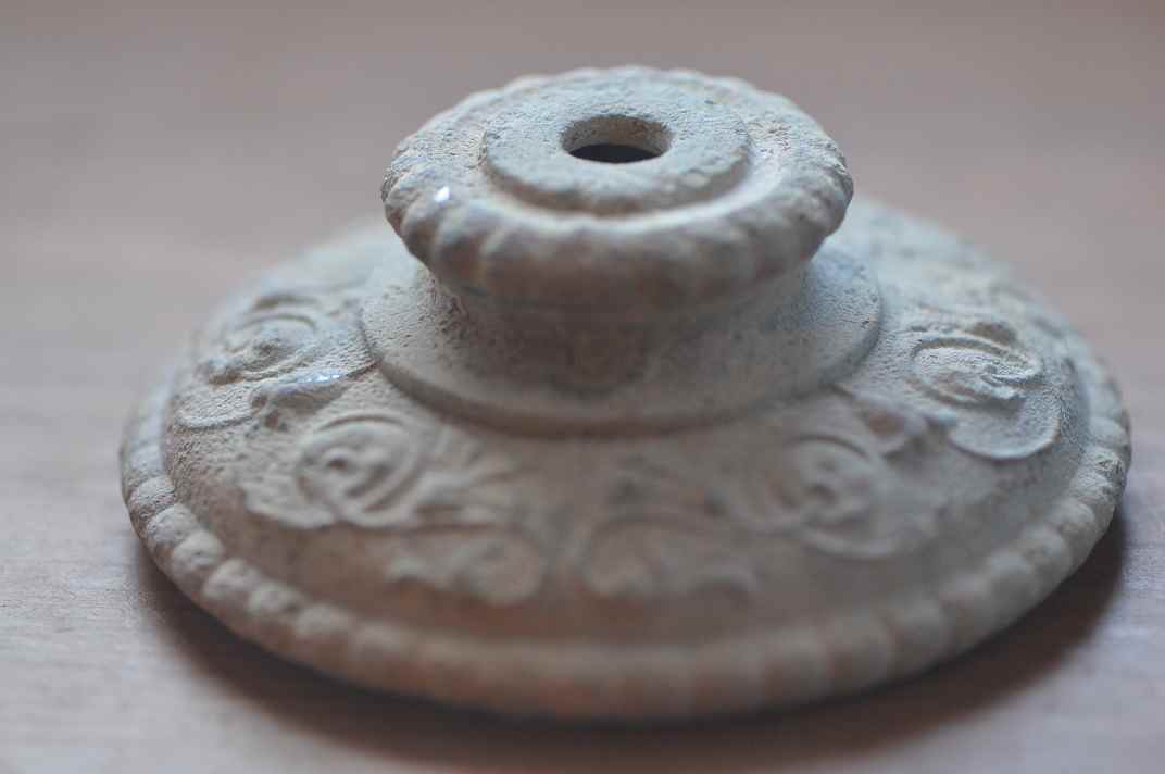 J'ai trouve cet objet en labour,si quelqu'un peu me dire se que ça peu etre et son epoque merci d avance la base fais 7.5cm ça semble etre de l étain