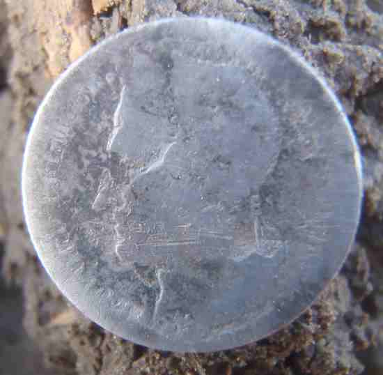 Je pense avoir trouvé une monnaie en argent. Sans doute une Louis Philippe mais elle en très mauvais état.
