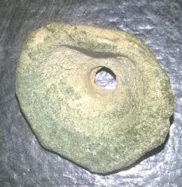 Pas grand chose en dehors de cette petite trouvaille sur laquelle reste un morceau d'émail bleu ... Percée en son centre.
