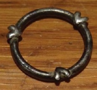 Voici un objet semble-t-l en argent. Son diamètre intérieur est de 17 mm. On dirait 3 coeurs sur le pourtour.